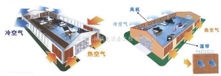 运行概括:水蒸发式降温,负压抽风,仅整体降温,需密闭式通风环境主要设备:负压风机+湿帘窗+供水管路+循环水箱